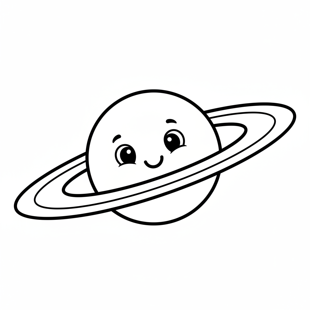 A delightful space coloring page featuring cartoon Saturn with its rings and a big friendly smile. Perfect for kids and adults who love coloring!