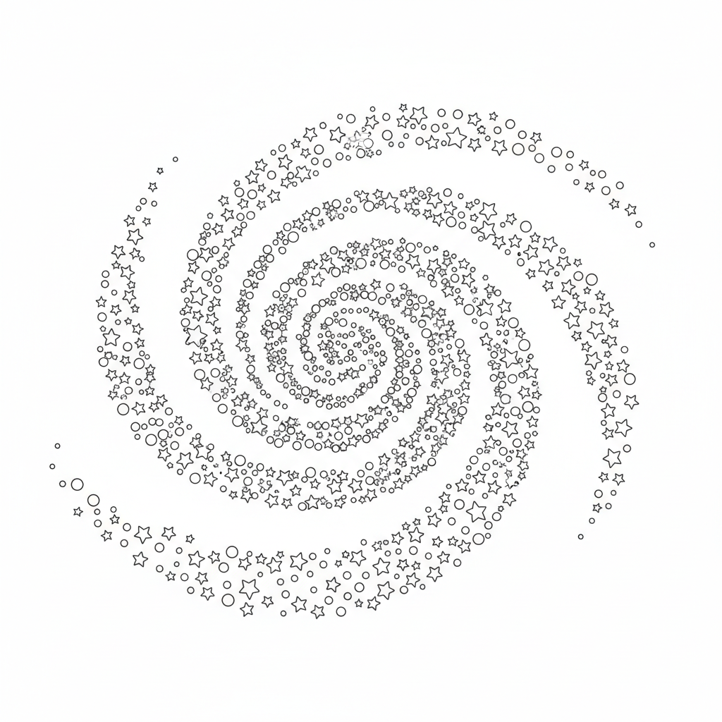 A delightful space coloring page featuring detailed spiral galaxy viewed from above with billions of stars in arm structure. Perfect for kids and adults who love coloring!
