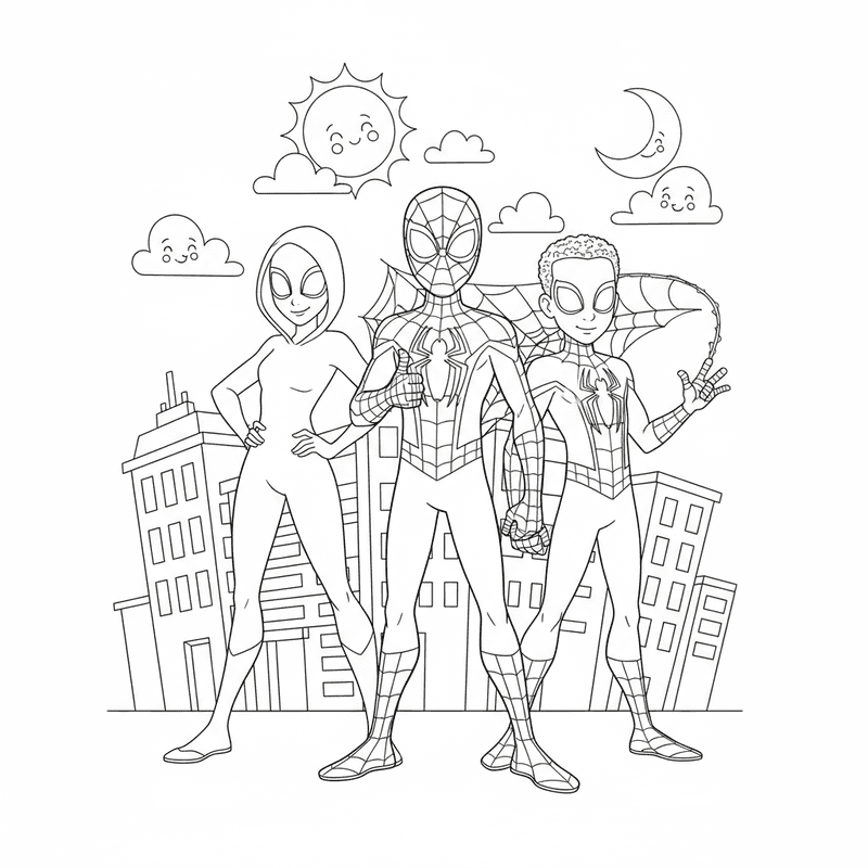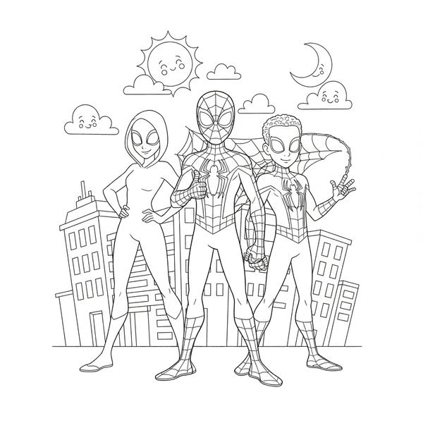 Explore our collection of fan-inspired Spidey coloring pages featuring original AI-generated artwork of the young web-slinging hero and his amazing friends.