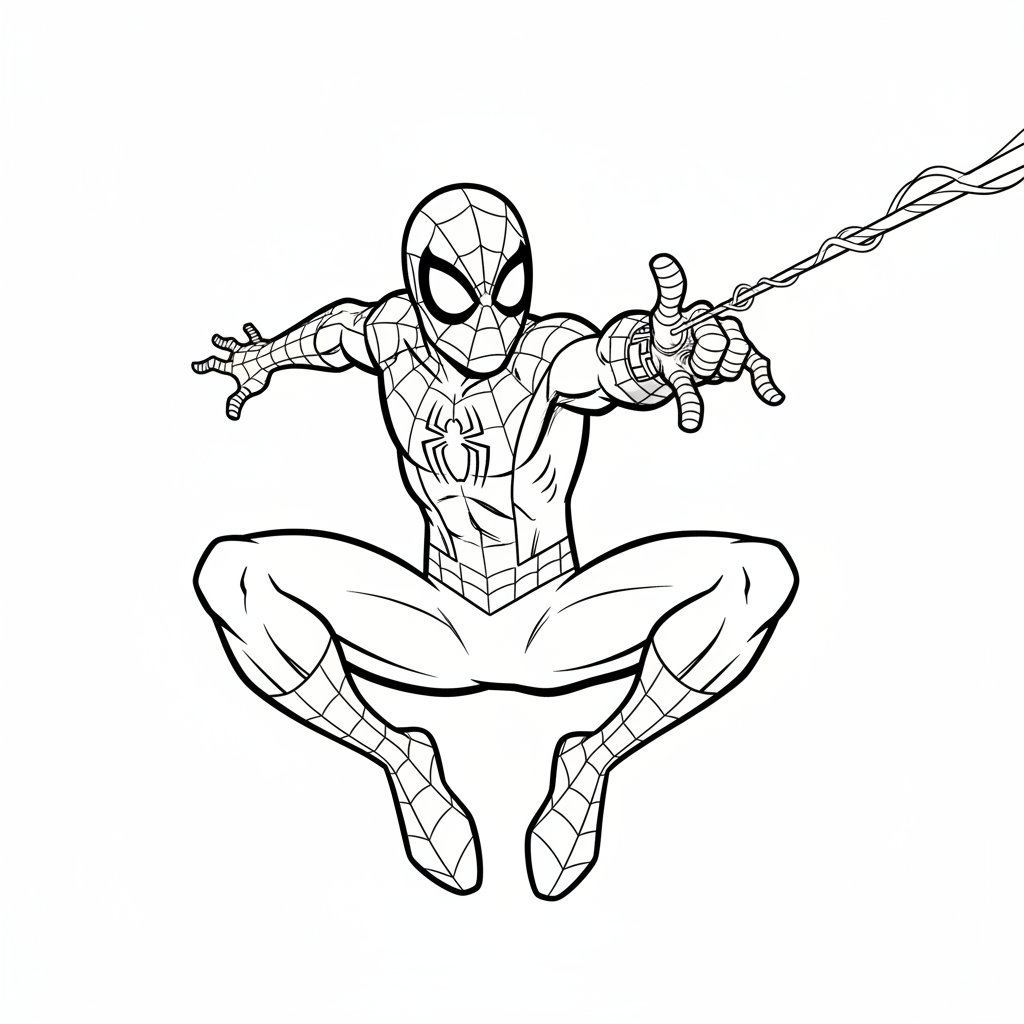 A delightful spidey coloring page featuring Spidey shooting web from wrist action pose dynamic. Perfect for kids and adults who love coloring!