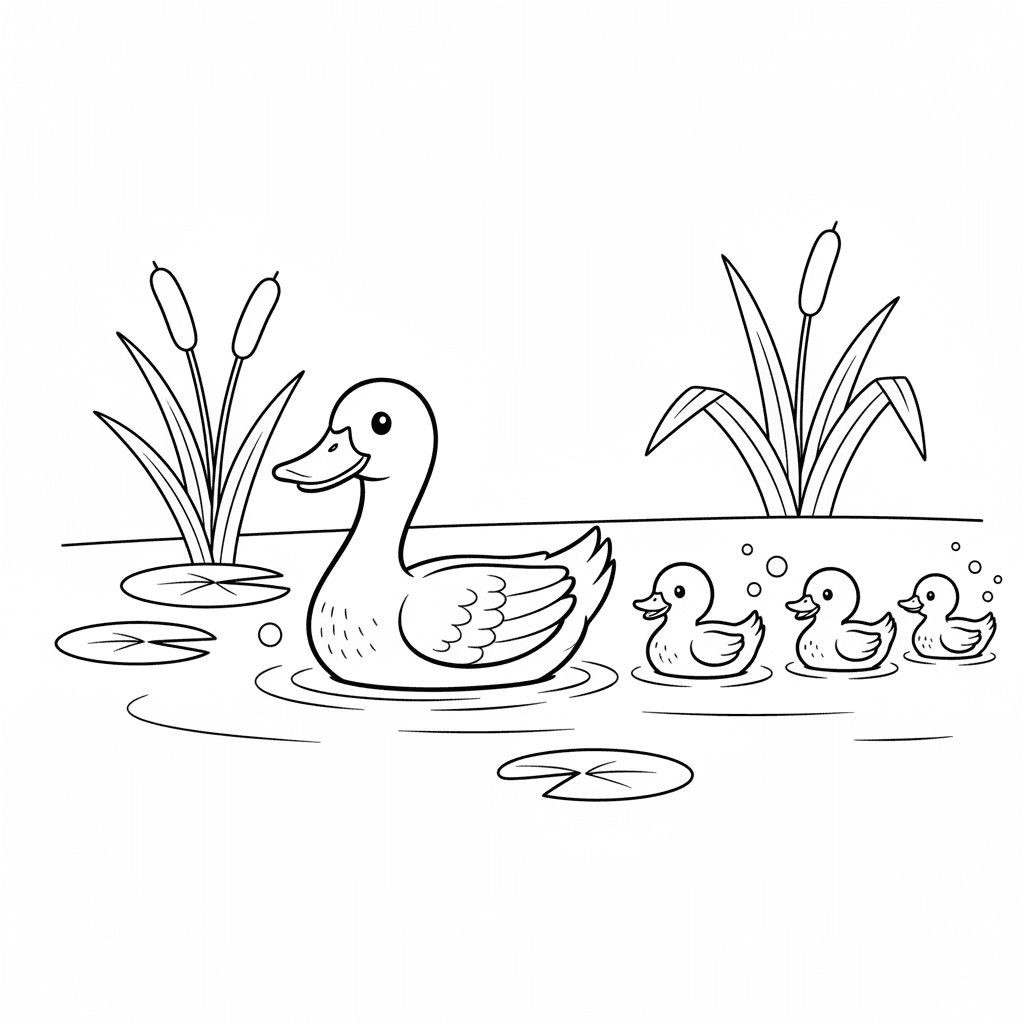 A delightful spring coloring page featuring duckling following mother duck pond. Perfect for kids and adults who love coloring!
