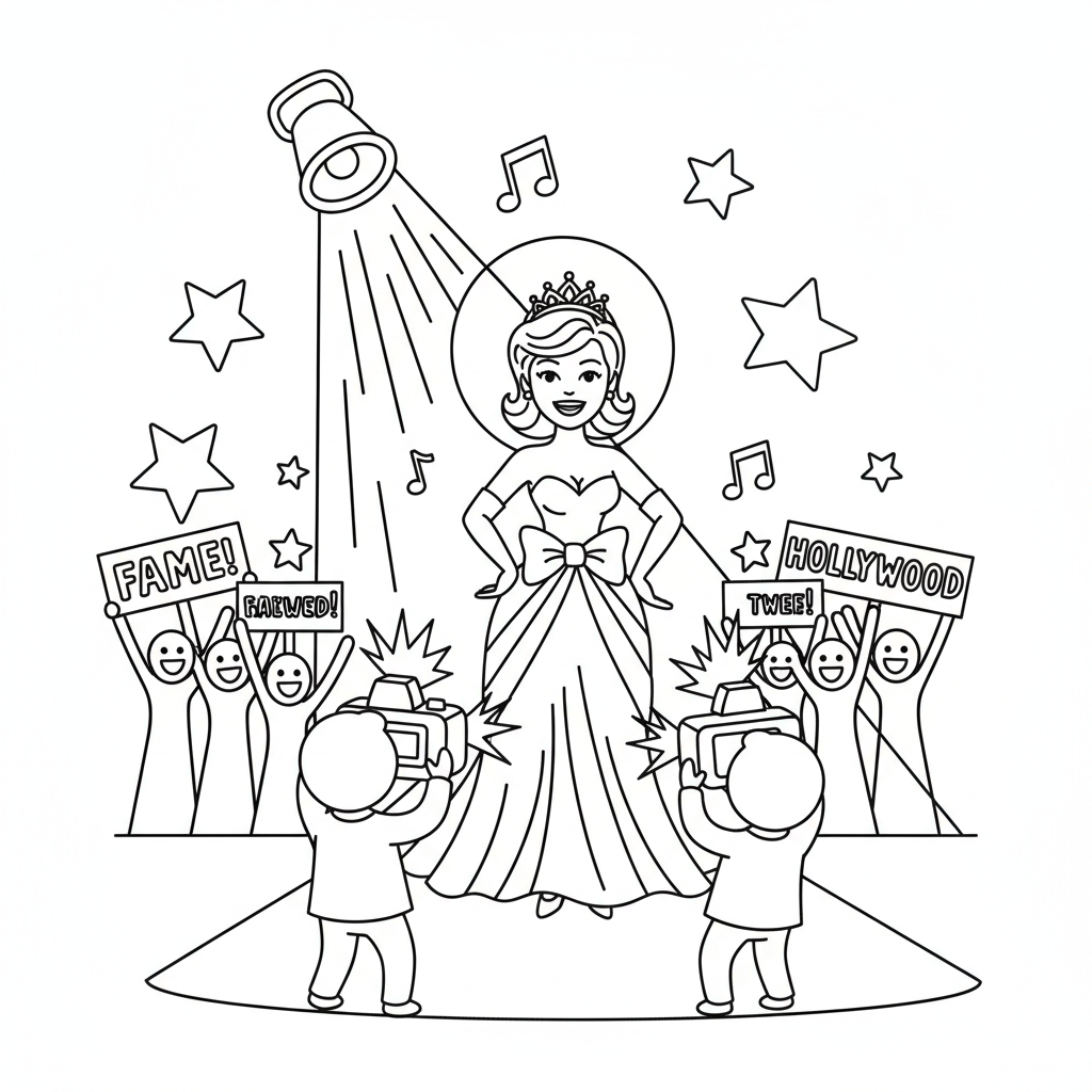 A delightful star coloring page featuring movie star red carpet celebrity fame glamour. Perfect for kids and adults who love coloring!