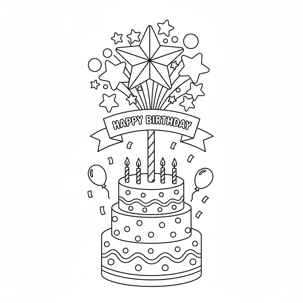 A delightful star coloring page featuring star birthday cake topper decoration celebration party. Perfect for kids and adults who love coloring!