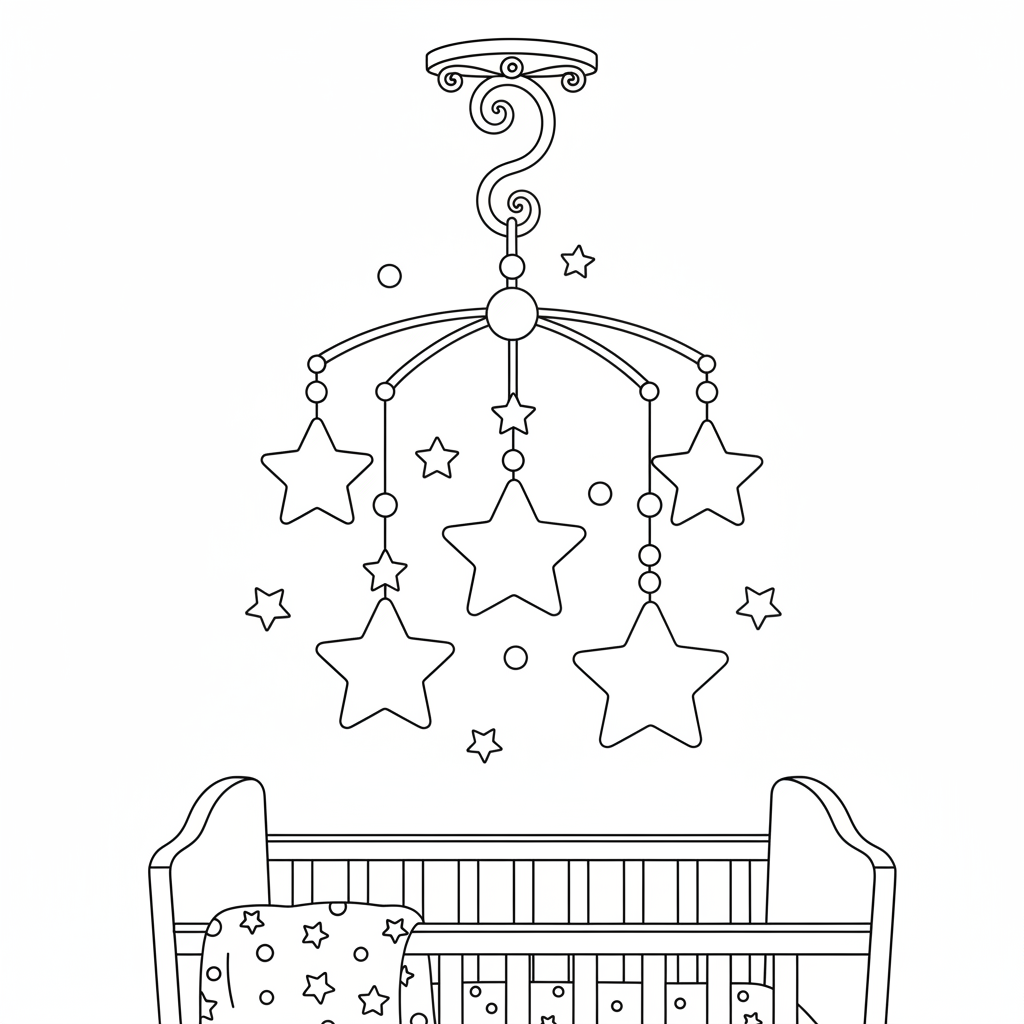 A delightful star coloring page featuring star mobile hanging nursery decoration baby room. Perfect for kids and adults who love coloring!