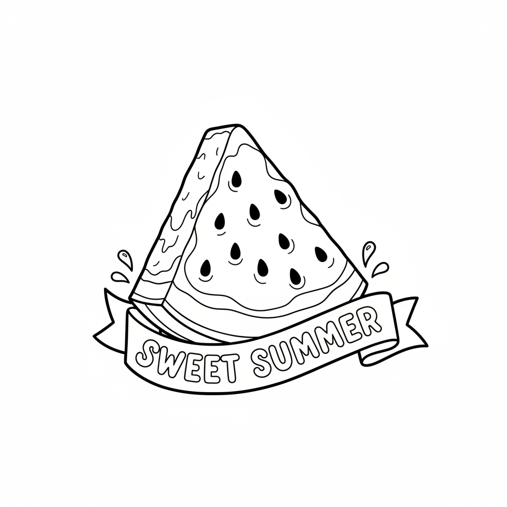 A delightful summer coloring page featuring watermelon slice juicy and sweet summer. Perfect for kids and adults who love coloring!