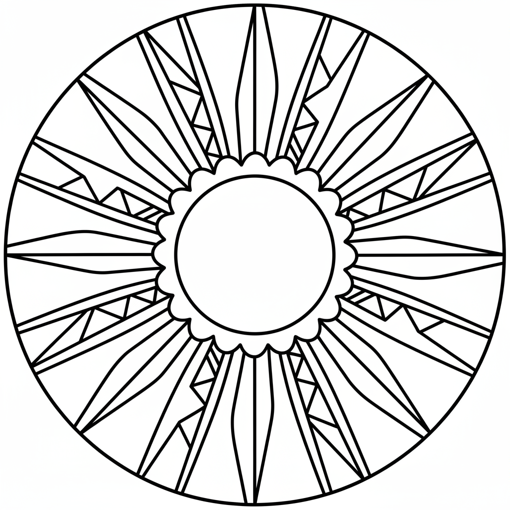 A delightful sun coloring page featuring sunburst pattern radiating lines design motif. Perfect for kids and adults who love coloring!