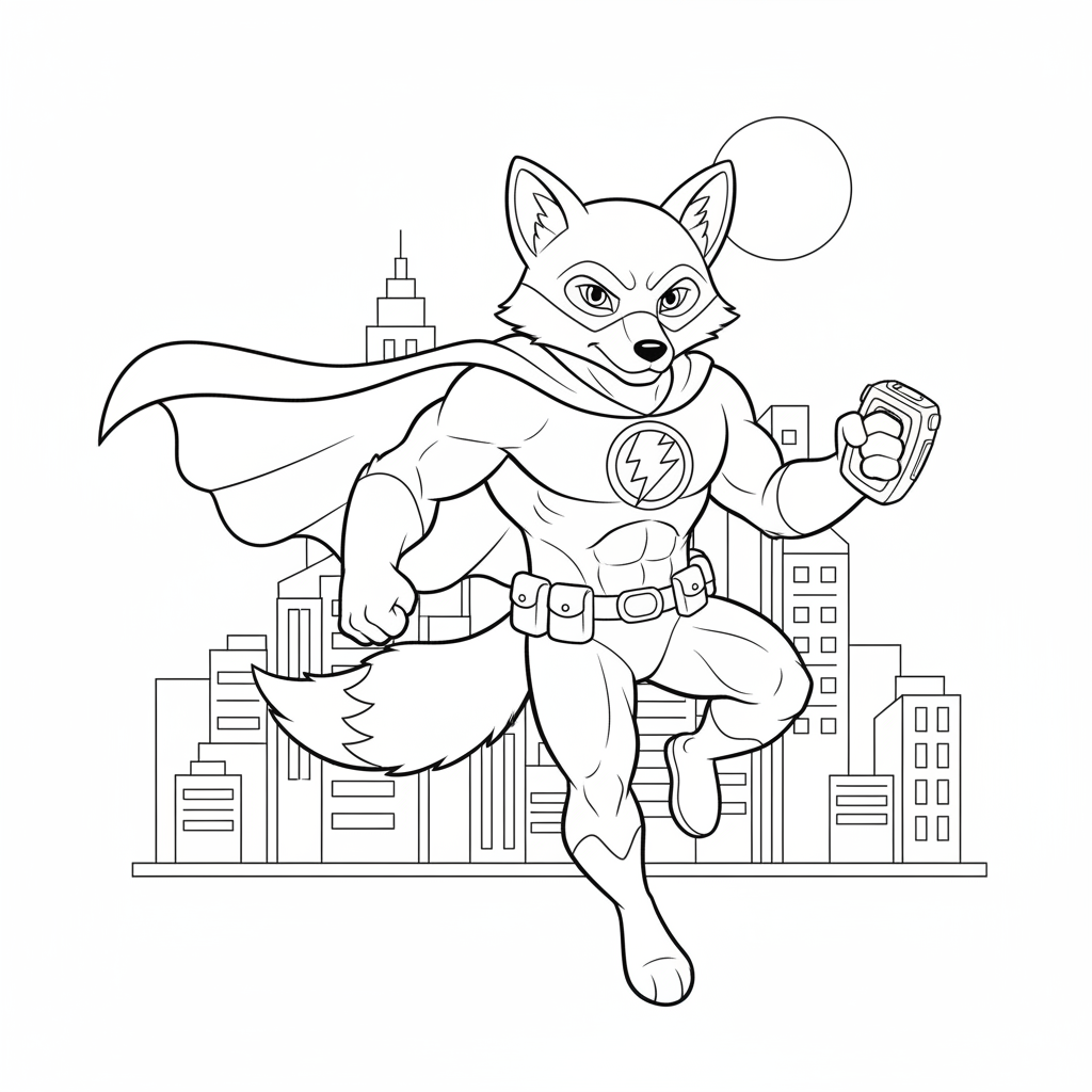 Beautiful superhero animal sidekick coloring page for kids and adults. Free to download and print.