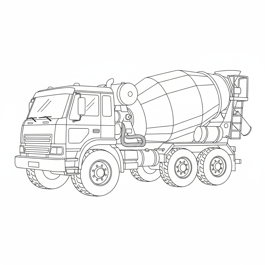 Beautiful cement mixer truck coloring page for kids and adults. Free to download and print.