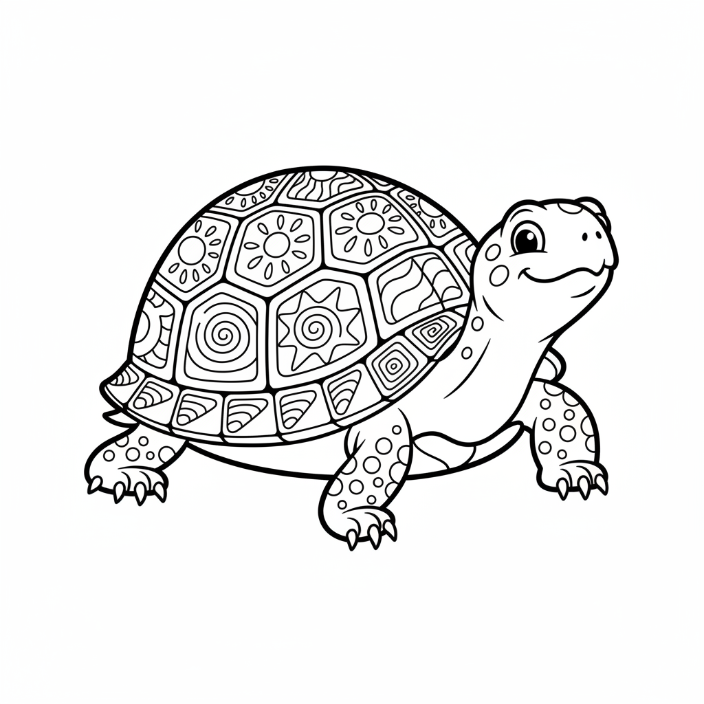 A delightful turtle coloring page featuring painted turtle colorful shell markings bright pretty. Perfect for kids and adults who love coloring!
