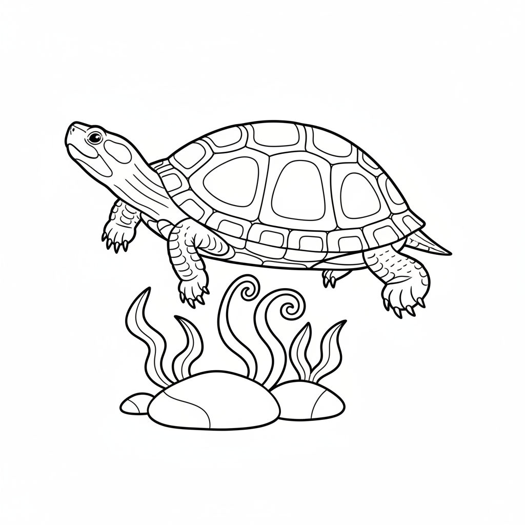 A delightful turtle coloring page featuring red-eared slider popular pet aquatic turtle species. Perfect for kids and adults who love coloring!
