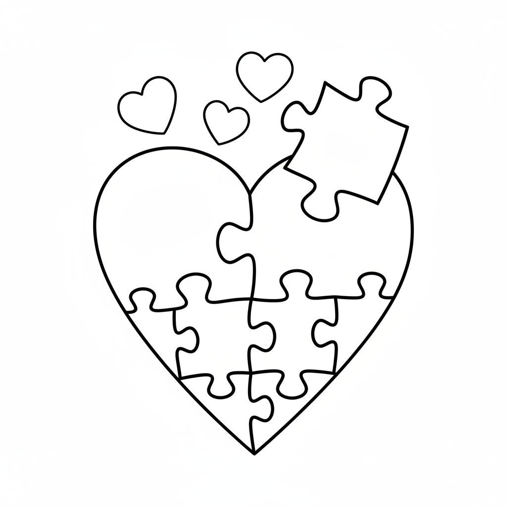Beautiful heart puzzle pieces fitting together coloring page for kids and adults. Free to download and print.