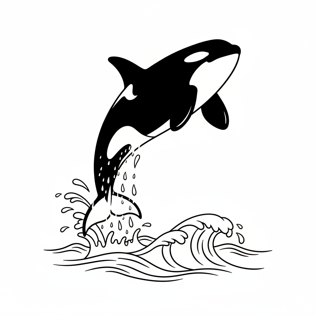 Beautiful orca whale jumping coloring page for kids and adults. Free to download and print.