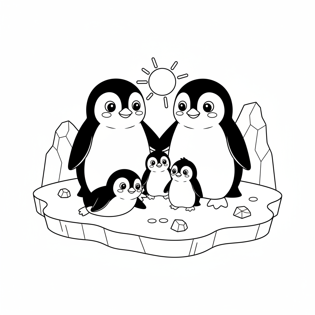 A delightful winter coloring page featuring penguin family on ice together adorable. Perfect for kids and adults who love coloring!