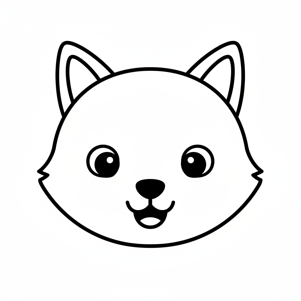 A delightful wolf coloring page featuring simple round baby wolf face with pointy ears and a smile for toddlers. Perfect for kids and adults who love coloring!